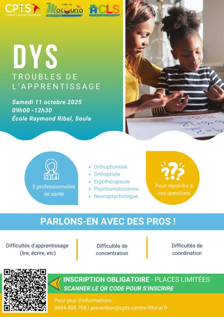 La CPTS, en collaboration avec le CLS de la Ville de Macouria, organise une matinée spéciale pour les parents sur les troubles DYS (lecture, écriture,…